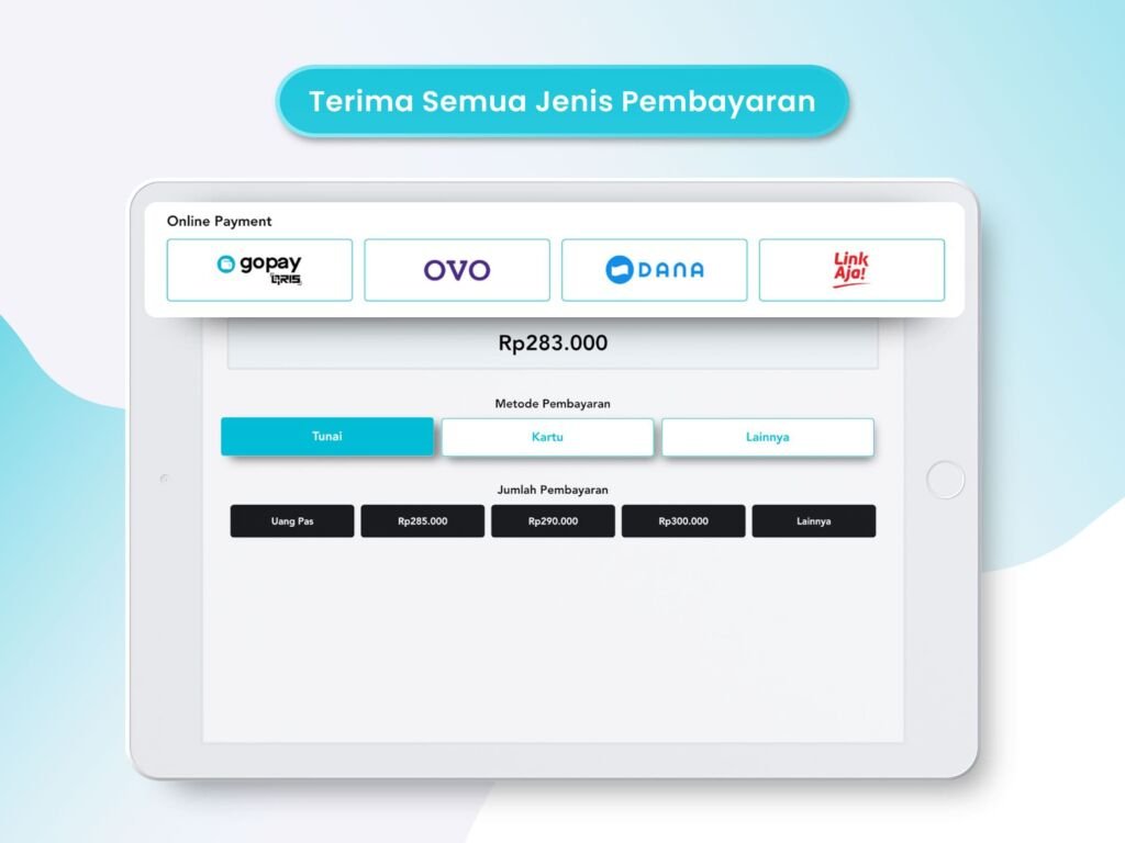 Lakukan transaksi dengan cepat, terima berbagai jenis pembayaran, atur multi-outlet, hingga pantau bisnis dengan 18+ laporan keuangan dalam satu aplikasi. Cocok untuk bisnis F&B, retail, barbershop, salon, dan berbagai bisnis lainnya.