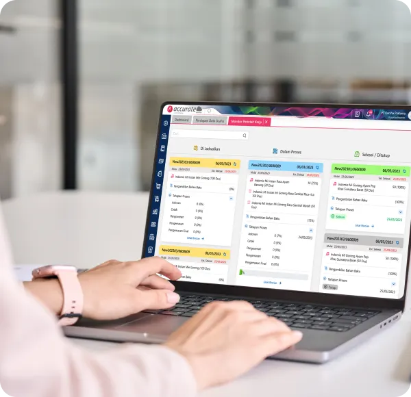 Pantau progres seluruh proses produksi yang sedang berjalan secara detail untuk kemudahan mendeteksi bottleneck.