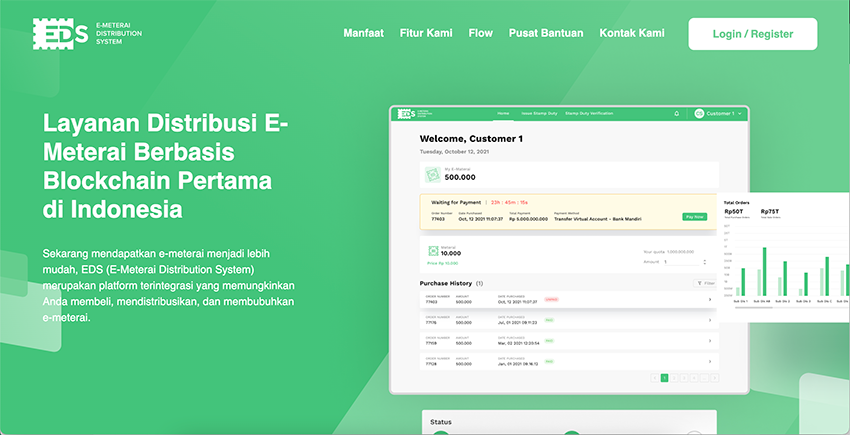 Dapatkan e-Meterai melalui E-DS berbasis teknologi blockchain untuk melengkapi dokumen digital Anda dengan dukungan platform yang saling terintegrasi antara VAS dengan Accurate. Cukup dalam waktu yang singkat, pembubuhan e-Meterai dapat dilakukan dengan mudah dan aman!
