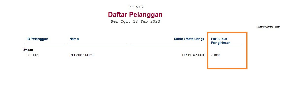 Laporan Daftar Pelanggan dengan menampilkan atribut tambahan pelanggan