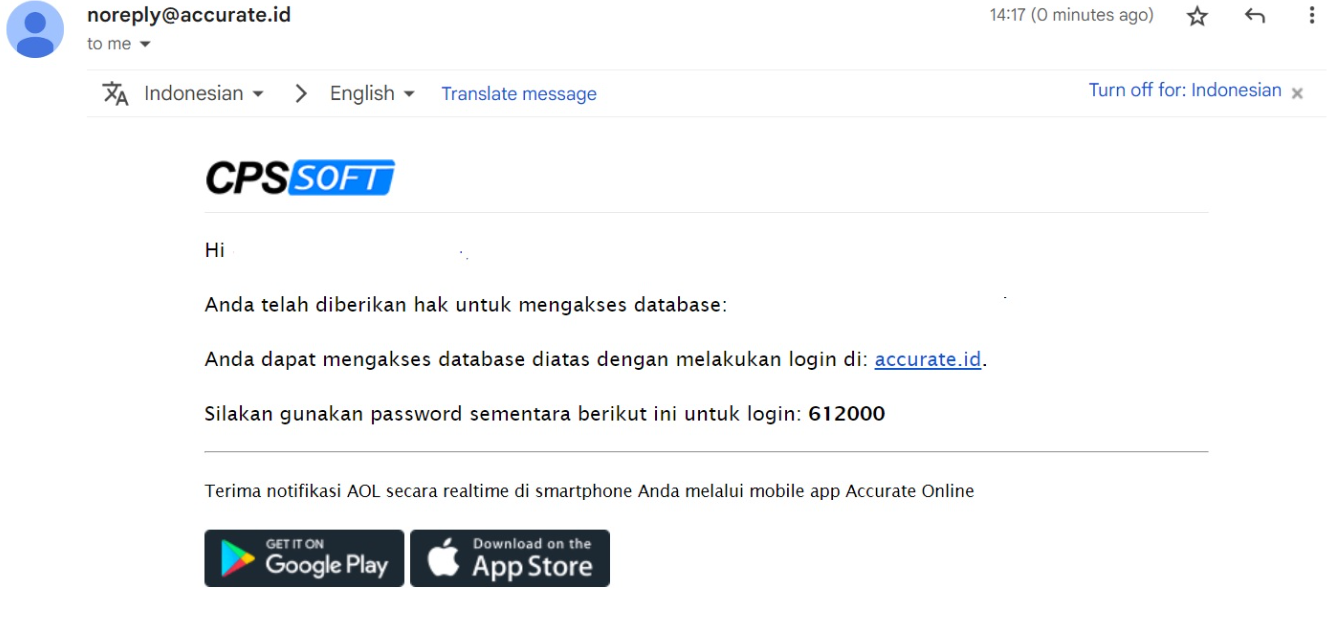 - Jika pengguna belum terdaftar di accurate.id, mereka akan menerima email berisi informasi pendaftaran sekaligus password sementara untuk login