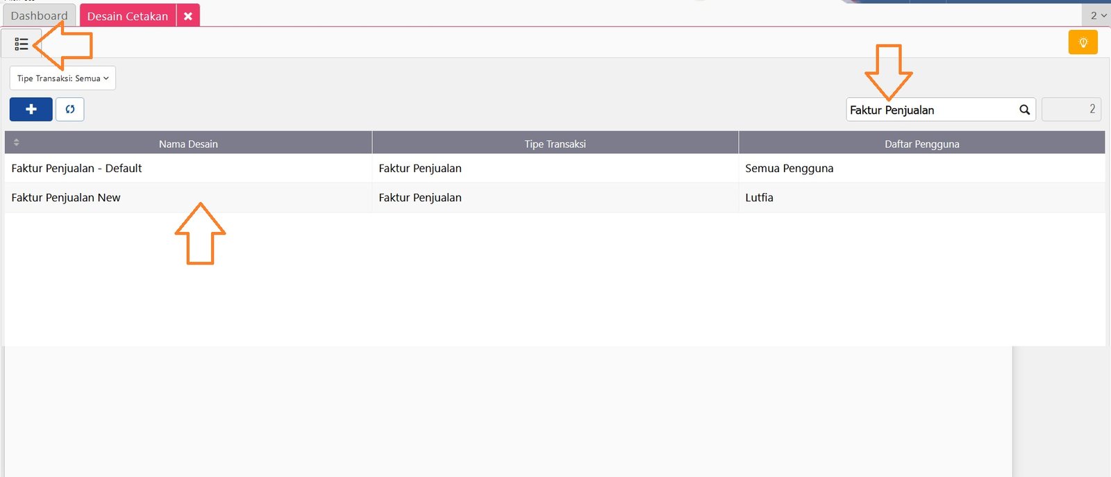 5. Untuk melakukan pengubahan, ke tab Daftar Desain Cetakan lalu cari Desain Cetakan tersebut kemudian klik ‘Buka Desainer‘ dan akan tampil halaman Desainer Desain Cetakan.
