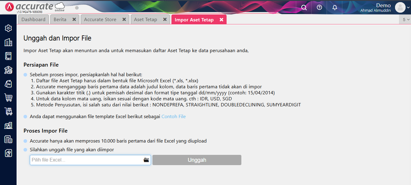 Berikut ini cara impor Data Aset Tetap di Accurate Online :