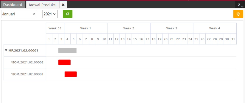 Tabel jadwal produksi akan terisi jika anda telah membuat Rencana Produksi, seperti gambar berikut ini.
