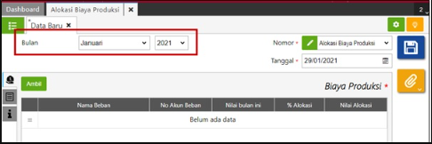 - Isikan bulan dan tahun alokasi-nya serta tanggal dialokasikannya biaya tersebut.