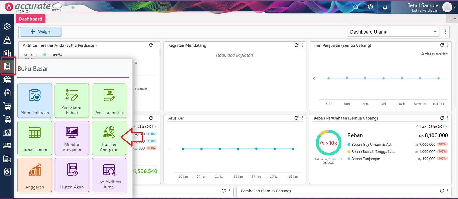 1. Masuk ke menu Buku Besar | Transfer Anggaran.
