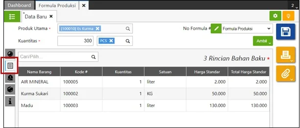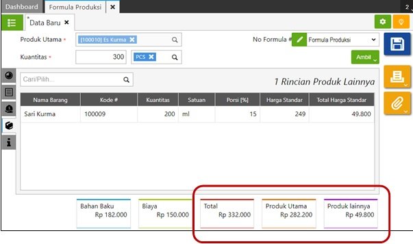 Harga standar produksi akan otomatis dihitung sesuai porsi yang diisikan terhadap total harga standar di formula produksi tersebut.
