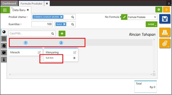 Berikut ini langkah-langkah untuk membuat Formula Produksi dengan Tahapan Produksi :