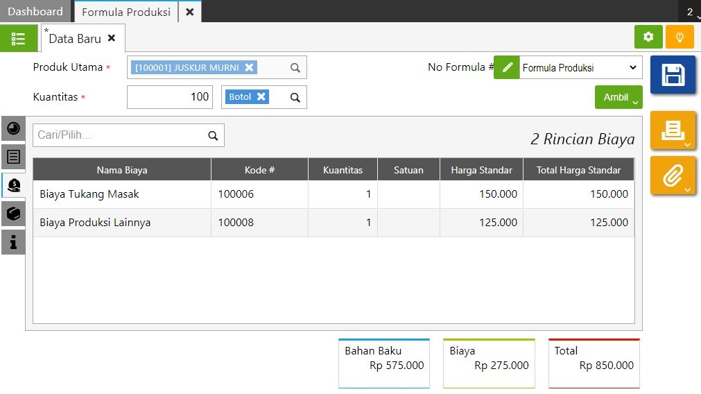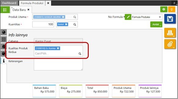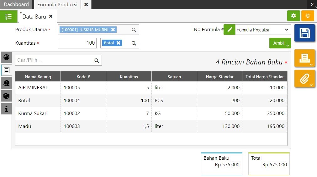 - Setelah selesai simpan Formula Produksi-nya.