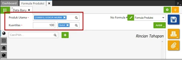 Berikut ini langkah-langkah untuk membuat Formula Produksi dengan Tahapan Produksi :
