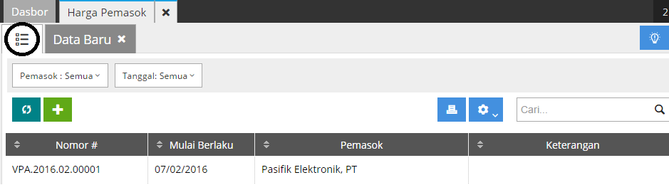 2. Untuk melihat daftar Harga Pemasok yang telah Anda buat, klik tombol yang diberi tanda lingkaran.