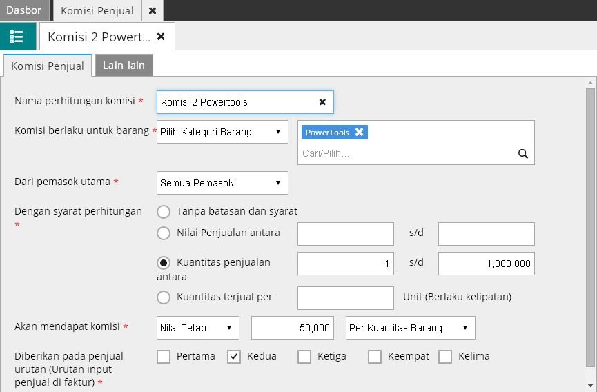 - Klik menu Penjualan | Komisi Penjual.