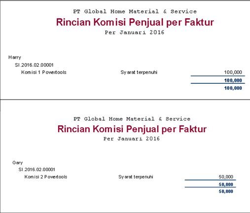 - Nilai komisi dari hasil penjualan tersebut bisa Anda lihat dari Laporan | Daftar Laporan | Laporan Penjualan, misalnya Rincian Komisi Penjual per Faktur.