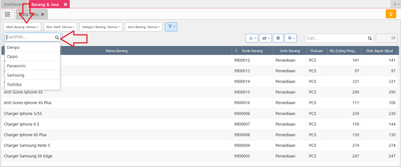 Filter berdasarkan Merk di Menu Barang & Jasa