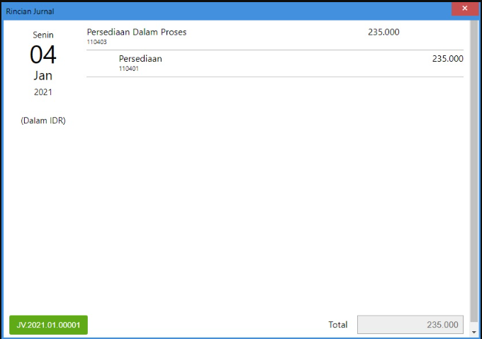 1. Simpan transaksi Pengambilan Bahan baku dan jurnal yang terbentuk adalah sebagai berikut.