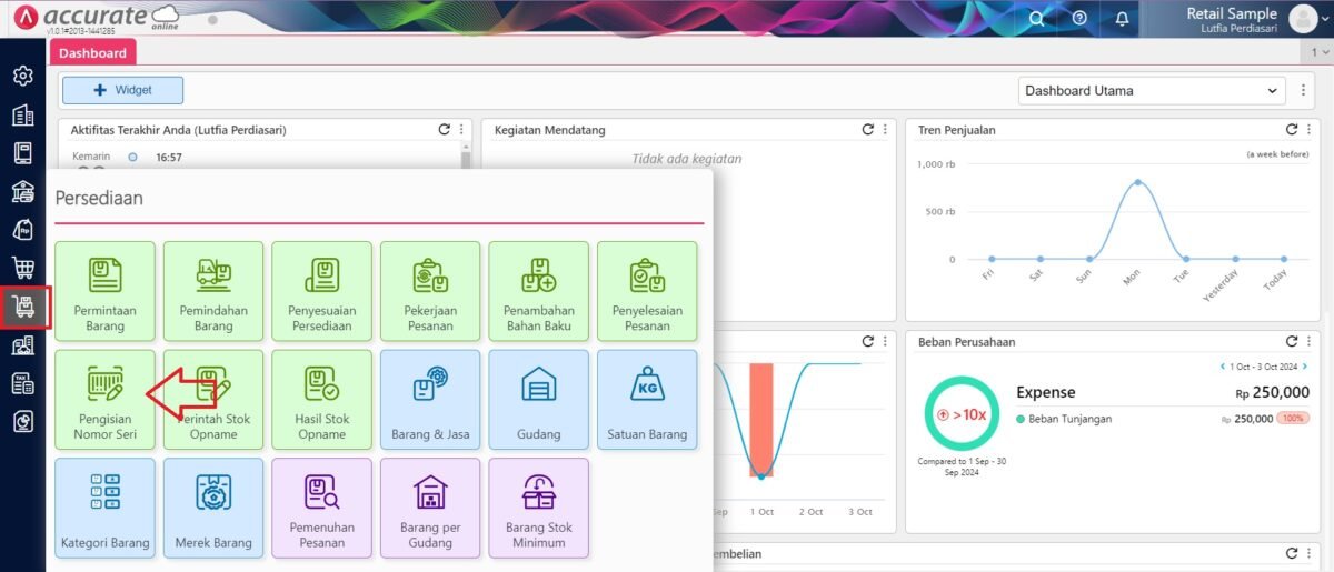 - Masuk ke menu Persediaan lalu pilih Pengisian Nomor Seri.