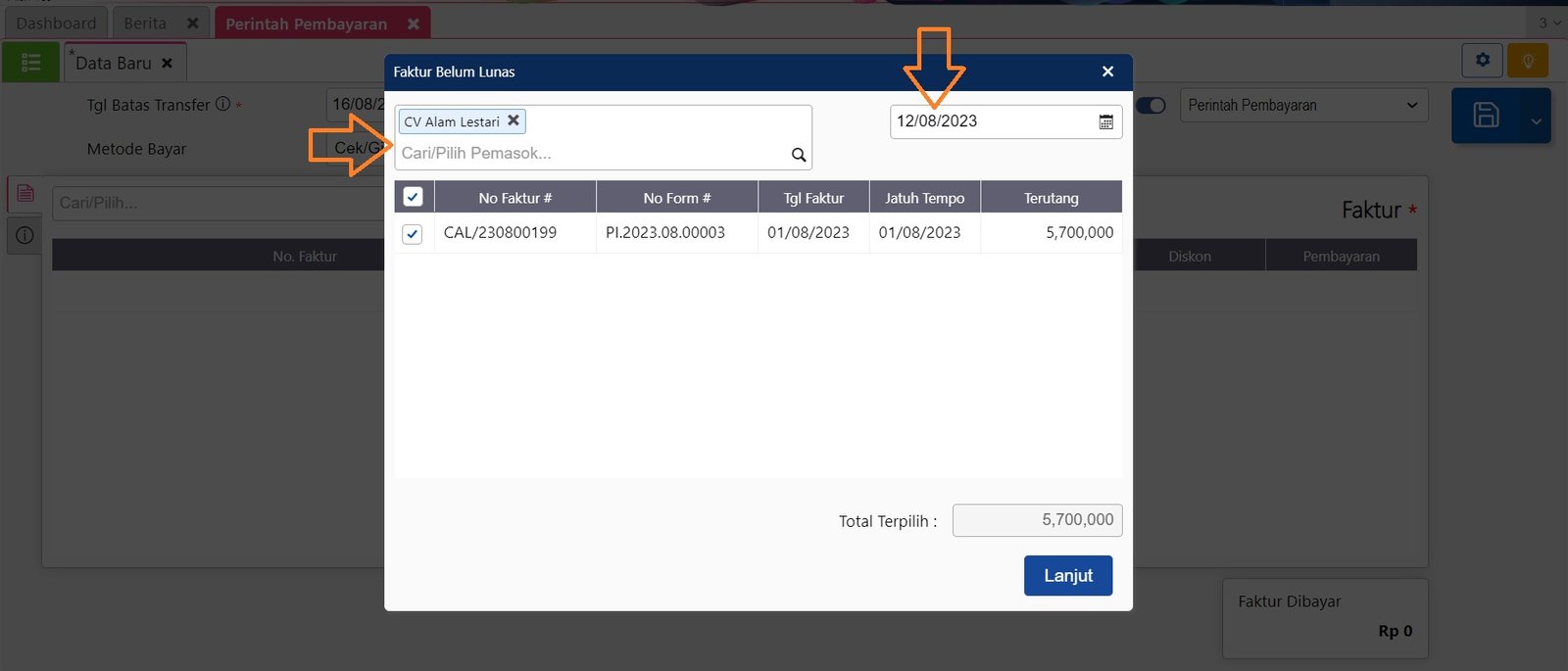 Pemilihan Faktur Pembelian yang akan dibayarkan