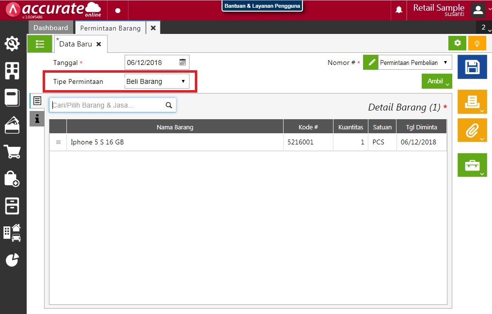 - Ke menu Persediaan | Permintaan Barang