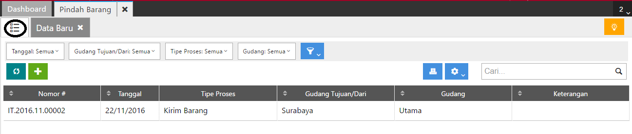 - Untuk melihat daftar pemindahan barang yang telah Anda buat, klik tombol yang diberi tanda lingkaran.