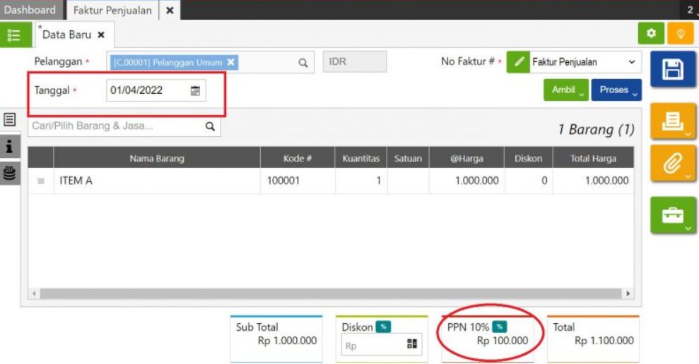 Pastikan semua transaksi sebelum April 2022 menggunakan tarif PPN 10% dan transaksi setelahnya menggunakan tarif PPN 11%.