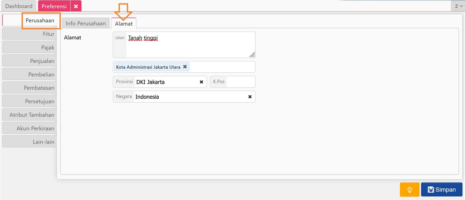 - Sedangkan pada tab Alamat, diisikan dengan alamat kantor Anda.