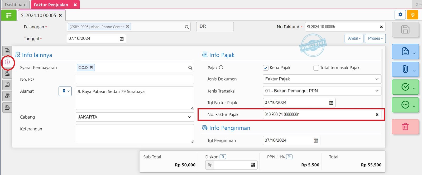 Transaksi Faktur Penjualan dengan Penomoran Otomatis Nomor Seri Faktur Pajak