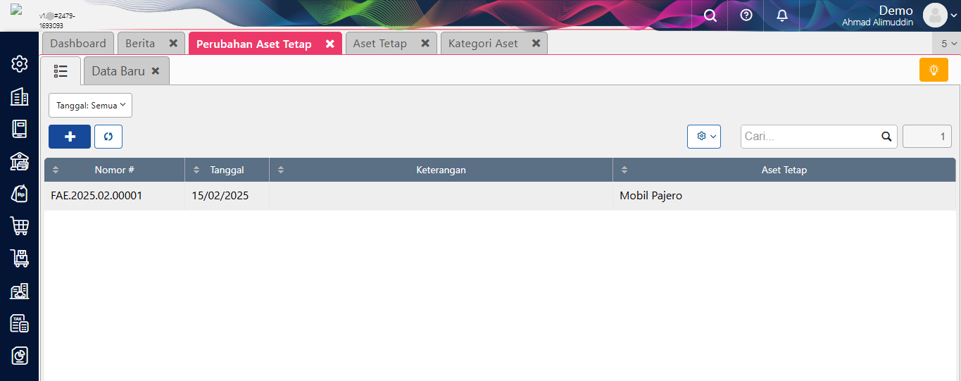 2. Untuk melihat daftar Perubahan Aset Tetap, Anda dapat klik tombol yang diberi tanda lingkaran.