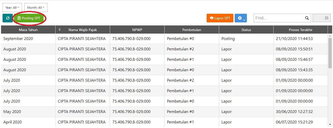 2. Klik Posting SPT
