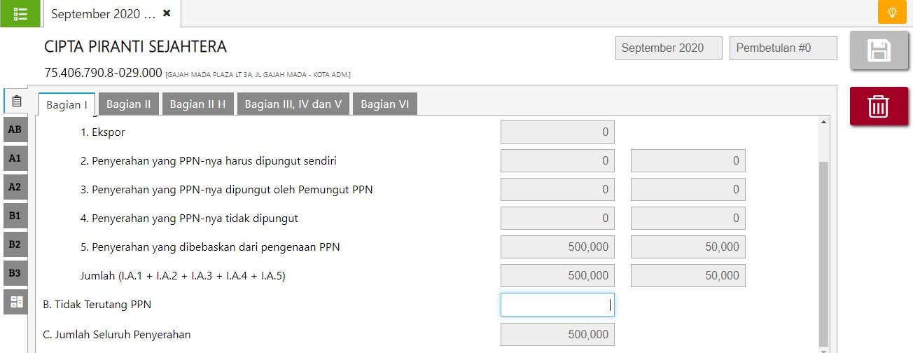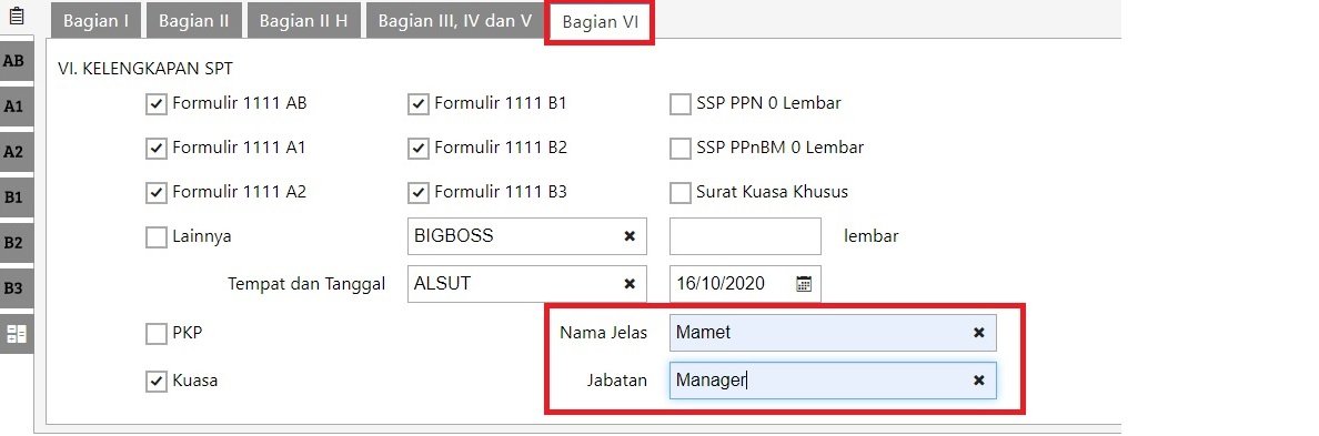 1. Selanjutnya, tampil seperti dibawah ini dan bisa di cek ditab Bagian I sd VI apakah sudah sesuai isiannya  dan di tab Bagian VI pastikan diisi nama jelas dan jabatan. Jika telah sesuai, bisa simpan dan setelah tersimpan  terproses menjadi submit.