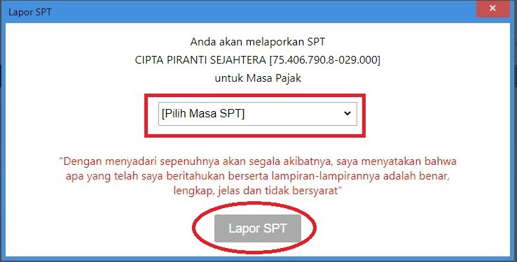 1. Pilih Masa SPT dan kemudian klik “Lapor SPT”