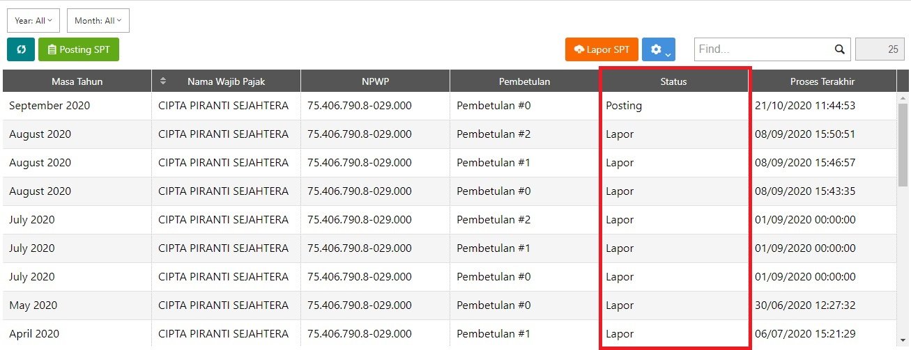 1. Setelah berhasil melakukan Lapor SPT, statusnya akan menjadi “Lapor”