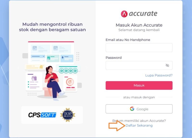 Register Akun Accurate Online | Tahap pertama untuk dapat menggunakan Accurate Online, Anda perlu melakukan registrasi pada akun email atau nomor handphone yang akan digunakan sebagai administrator/ operator database.